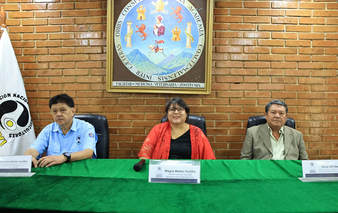 En la presentación, participaron Mayra Motta Padilla, viceministra de Sanidad Agropecuaria y Regulaciones; Gerber Morales, representante del Organismo Internacional Regional de Sanidad Agropecuaria (OIRSA), sí como Óscar Gil Chew, miembro de la Junta Directiva de la Asociación Nacional de Avicultores (Anavi).