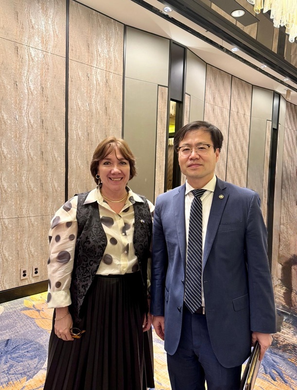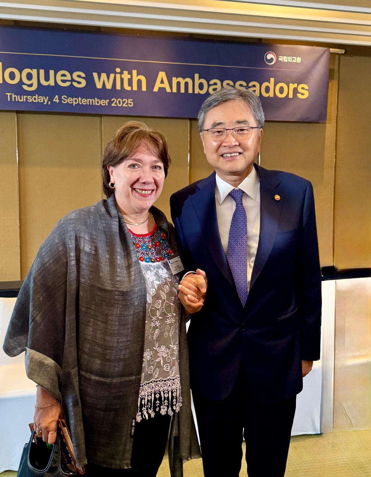 Seúl, Corea del Sur, 8 de septiembre de 2025. La Embajadora de Guatemala en Corea del Sur, Sara Solís, participó recientemente en una conferencia ofrecida por el Ministro de Relaciones Exteriores de Corea, Cho Hyun, organizada por la Academia Nacional de Diplomacia de Corea.