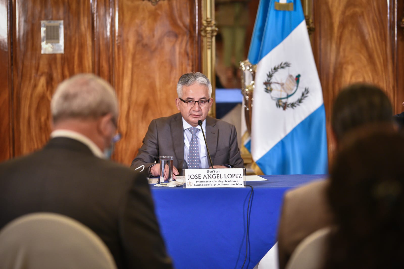 El presidente de la República de Guatemala, Alejandro Giammattei, junto al ministro de Agricultura, Ganadería y Alimentación José Ángel López y el ministro de Finanzas Públicas, Álvaro González oficializaron la implementación del proyecto “Estipendios para la recuperación de suelos y apoyo a agroinsumos” que busca atender a 180 mil pequeños productores durante la primera fase del Plan Nacional de Recuperación de Suelos.
