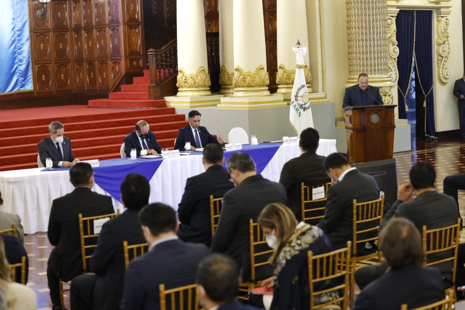 En la actividad participaron todos los integrantes del Consejo Nacional de Cambio Climático, Luis Ruano, comisionado presidencial de asuntos municipales; Ricardo Rapallo, representante de la Naciones Unidas para la Alimentación y Agricultura; Miguel Barreto, coordinador residente de las ONU en Guatemala, así como funcionarios de Gobierno.