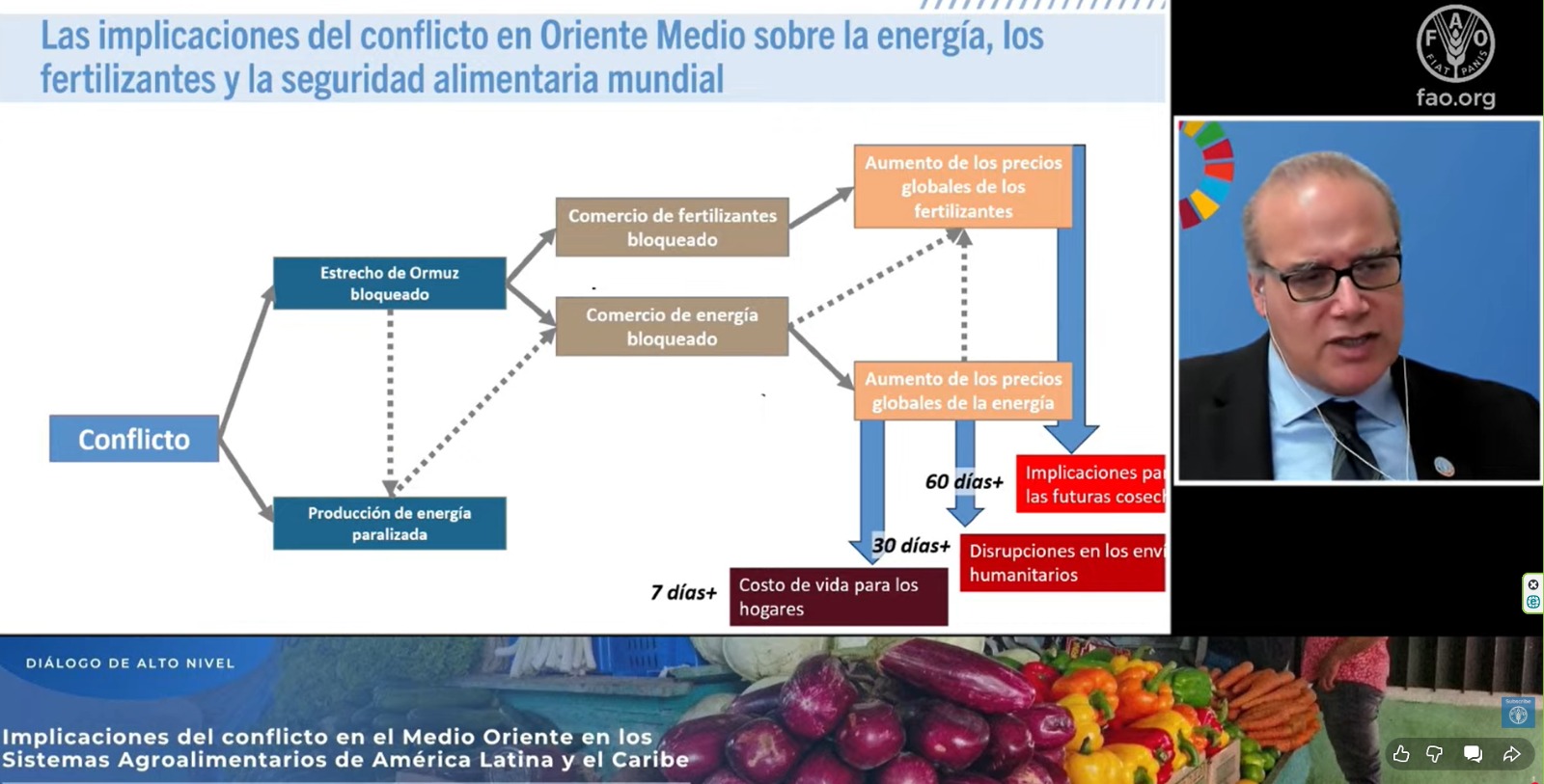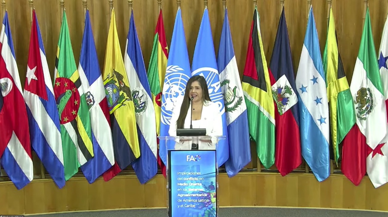 La ministra de Agricultura, Ganadería y Alimentación, María Fernanda Rivera Dávila, formó parte del diálogo de alto nivel impulsado por la FAO, en el que se analizaron los efectos del conflicto en Medio Oriente, sobre los sistemas agroalimentarios de América Latina y el Caribe.