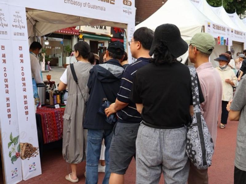 La Embajadora de Guatemala en Corea del Sur, Sara Solís Castañeda, señaló que nuestro país ha participado de manera ininterrumpida en las tres ediciones del Festival Internacional del Café celebradas en Nowon-gu, reafirmando así el compromiso de la República con la promoción de su cultura cafetalera a nivel global. Subrayó la relevancia de este prestigioso evento, que en su más reciente edición reunió a más de 25,000 asistentes y congregó a destacados países productores, así como a empresas líderes del sector.