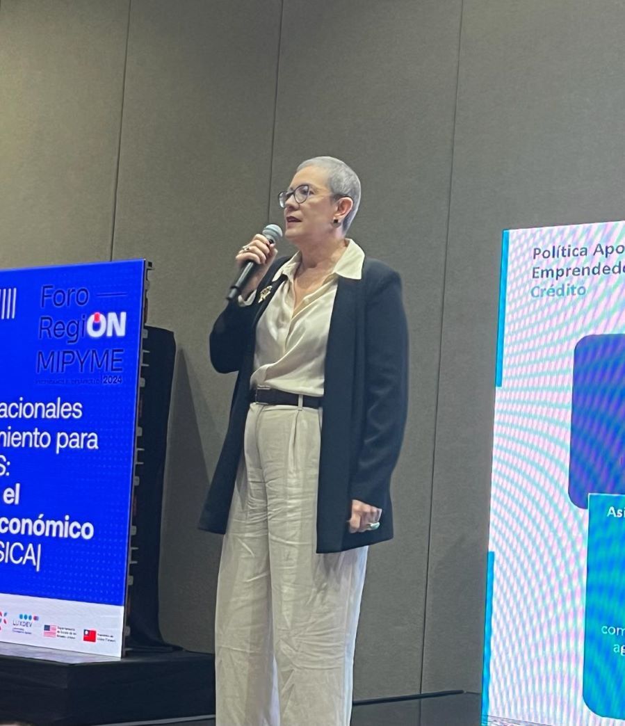 La viceministra de Desarrollo de la MIPYME, Elizabeth Ugalde, participó esta semana, en el Foro Región MIPYME 2024 en donde se realizó el lanzamiento del Fondo para la Empresarialidad Femenina (FEF), organizado por Cenpromype y el Gran Ducado de Luxemburgo, en la Ciudad de El Salvador.
