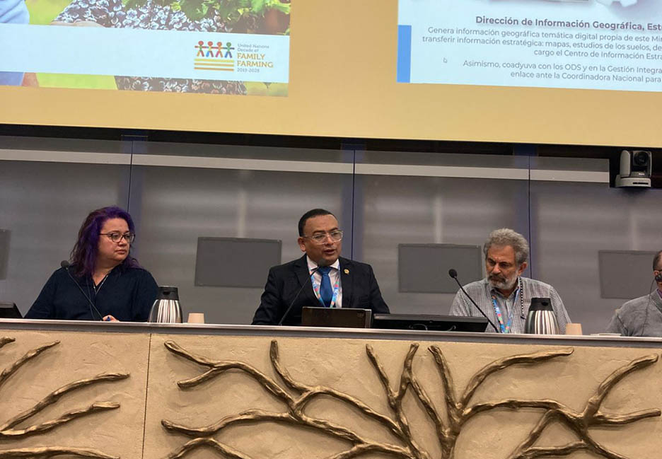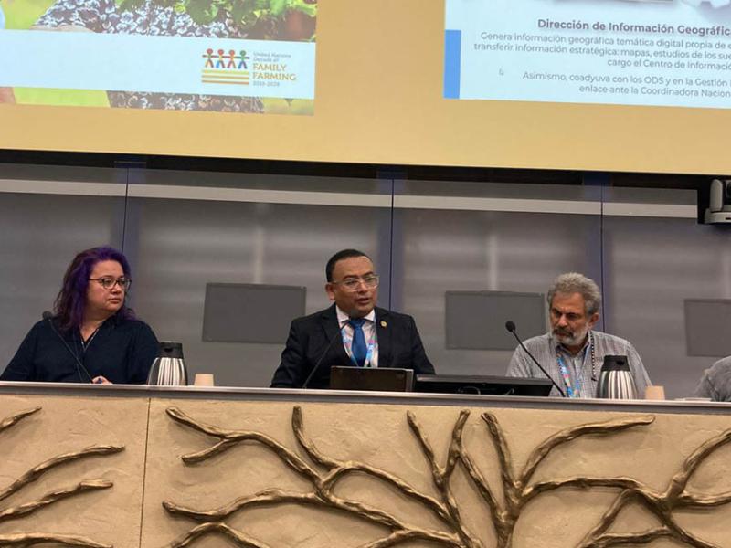 El encuentro tuvo como propósito promover políticas públicas innovadoras en la agricultura familiar y buscar soluciones para fortalecer la resiliencia y sostenibilidad del sector en el contexto del cambio climático. El país mostró los avances alcanzados, por medio de Rafael López, director de Información Geográfica, Estratégica y de Gestión de Riesgos del MAGA.