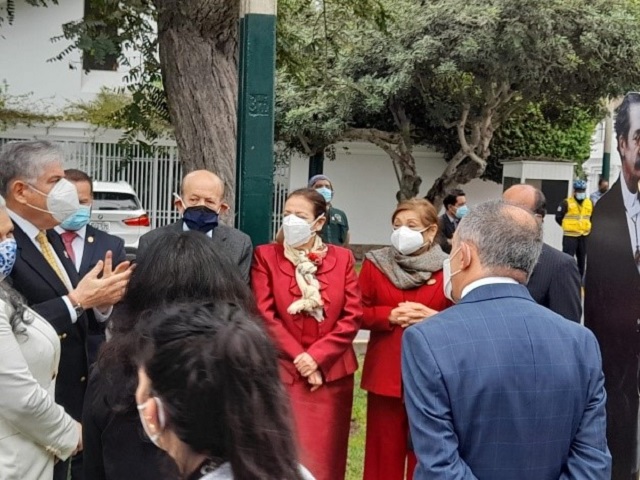 Lima, 16 de julio de 2021. La embajadora de Guatemala en Perú, Verónica Araujo Samayoa, y el primer secretario y cónsul, Sergio Bran García, participaron en un homenaje por Bicentenario de la Independencia del Perú, en el cual estuvieron presentes también los jefes de las misiones diplomáticas de Panamá, Costa Rica y Nicaragua.