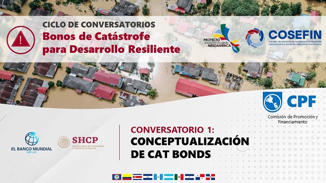 Con la asistencia de funcionarios de Ministerios o Secretarías de Hacienda, Finanzas, Gestión de Riesgos/Protección Civil y Medio Ambiente de Mesoamérica, el contenido de este primer conversatorio se centró en la temática "Cat-Bonds como instrumento de la Protección Financiera Contra Desastres", con presentaciones del Banco Mundial y la Secretaría de Hacienda de México.