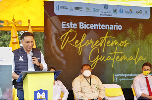 El presidente Alejandro Giammattei, a través de un video, se dirigió a los asistentes del evento y enfatizó en que los tres millones de árboles son nuevos “aires de esperanza y vida para la población”. Además, indicó que estas plantas son semillas del futuro, aire más limpio y un medio ambiente autosustentable.