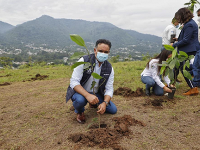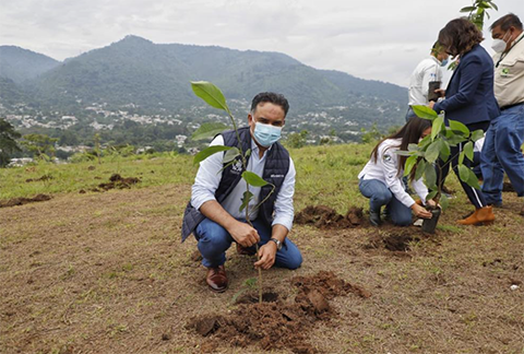 El ministro de Ambiente y Recursos Naturales, Mario Rojas Espino, hizo el lanzamiento oficial del programa “Reforestemos Guatemala”, acompañado de autoridades de gobierno, el alcalde de Santa Catarina Pinula, Sebastián Siero y empresarios.