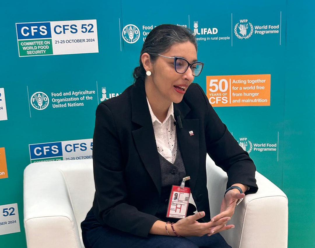 En el marco de la 52ª sesión plenaria del Comité de Seguridad Alimentaria Mundial (#CFS52) realizada en Roma, la viceministra de Seguridad Alimentaria y Nutricional, Klemen Gamboa, reafirmó el compromiso de país por mejorar la seguridad alimentaria y nutrición, así como de avanzar hacia sistemas alimentarios sostenibles.