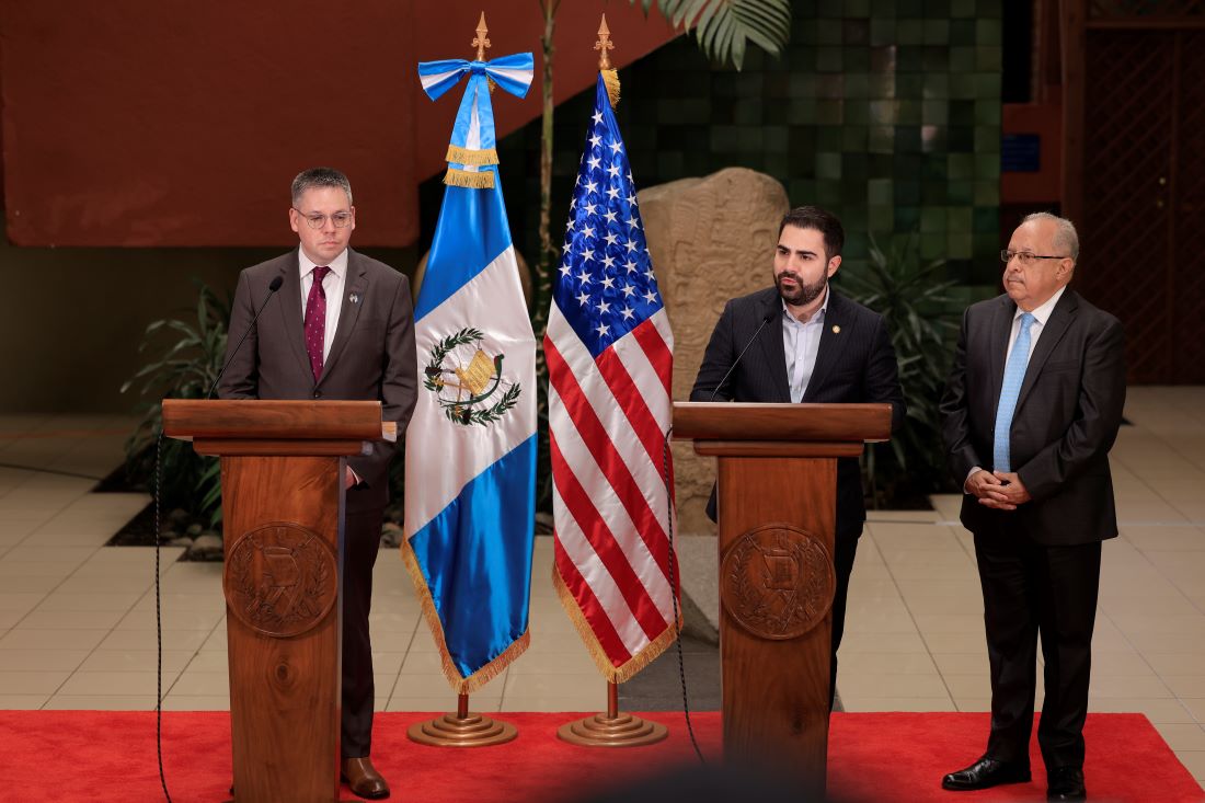 Guatemala ratifica su firme vocación democrática y, esta vez, lo hizo al recibir a 135 presos políticos nicaragüenses, víctimas de un régimen autoritario, dijo Santiago Palomo, Secretario de Comunicación de la Presidencia durante una conferencia que ofrecieron junto con el Canciller Carlos Martínez y el subsecretario de Estado adjunto para América Central en la Oficina de Asuntos del Hemisferio Occidental, Eric Jacobstein.