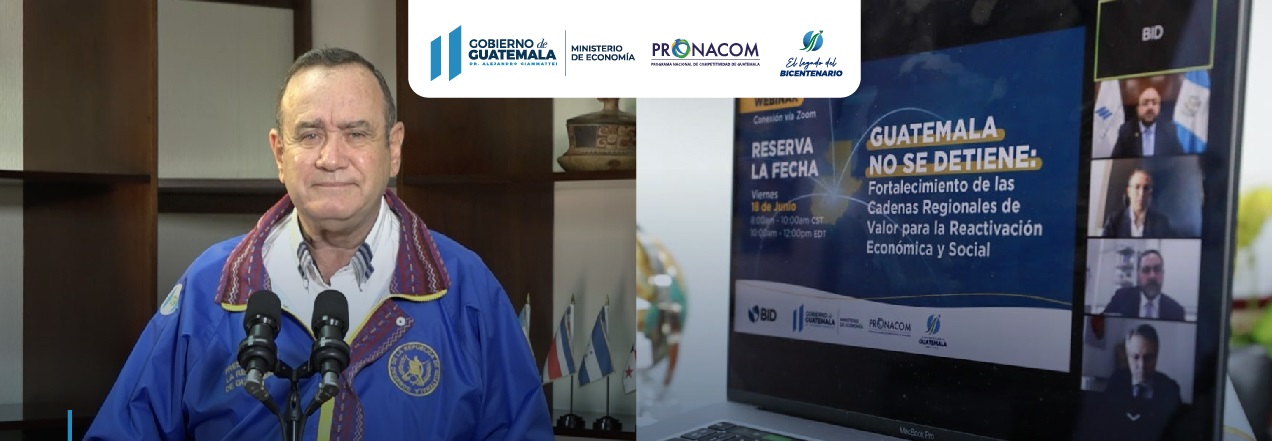 El Programa Nacional de Competitividad -PRONACOM- del Ministerio de Economía -MINECO-, en conjunto con el Banco Interamericano de Desarrollo -BID-, realizaron el foro GUATEMALA NO SE DETIENE: Fortalecimiento de las Cadenas Regionales de Valor para la Reactivación Económica y Social, en el cual participaron autoridades de alto nivel del Gobierno de Guatemala y el BID, así como empresarios que han confiado en el país como destino de inversión.