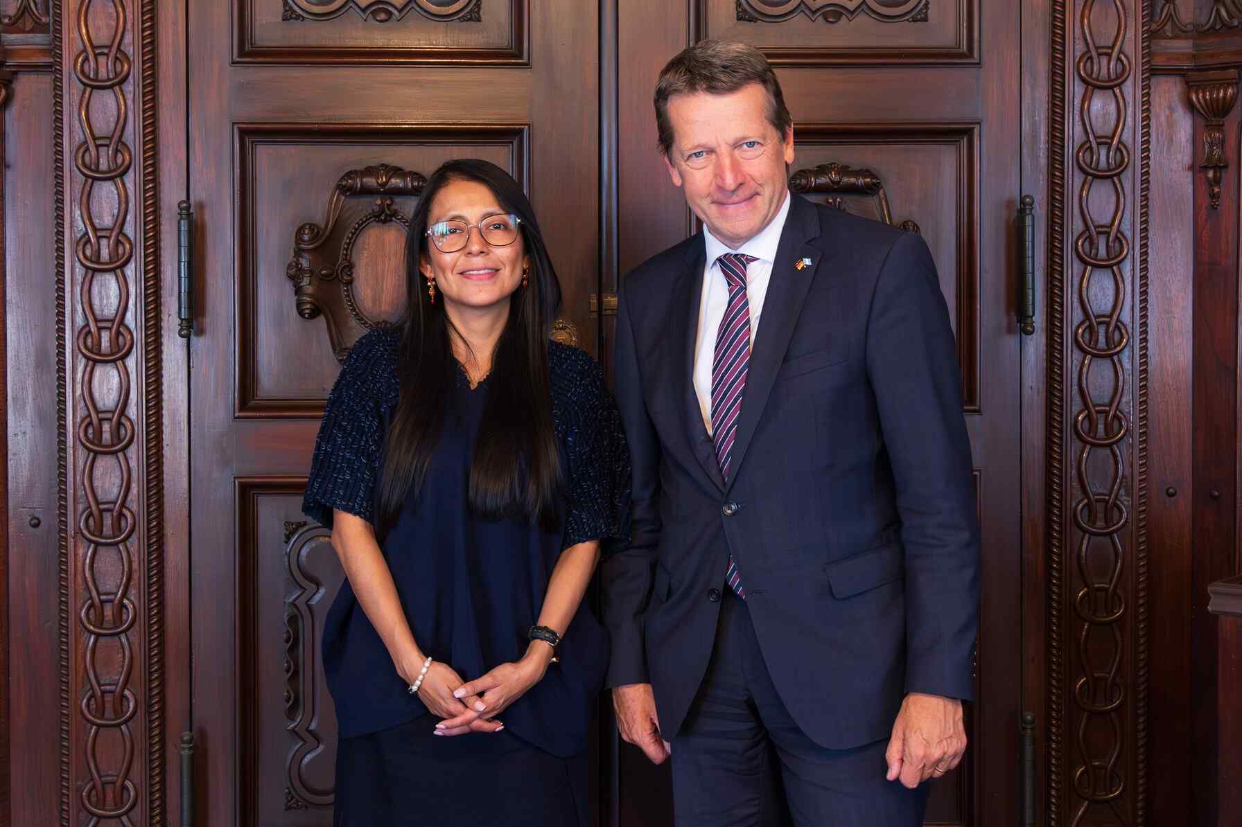 La viceministra de Patrimonio Cultural y Natural, Laura Cotí Lux, sostuvo una reunión con el embajador de Alemania en Guatemala, Dr. Hardy Boeckle, para abordar los proyectos de cooperación cultural previstos para el año 2026, en el marco de una relación bilateral que busca fortalecer la preservación del patrimonio y el desarrollo cultural del país.