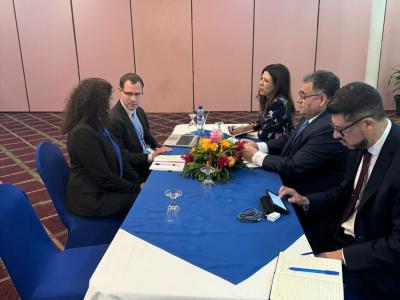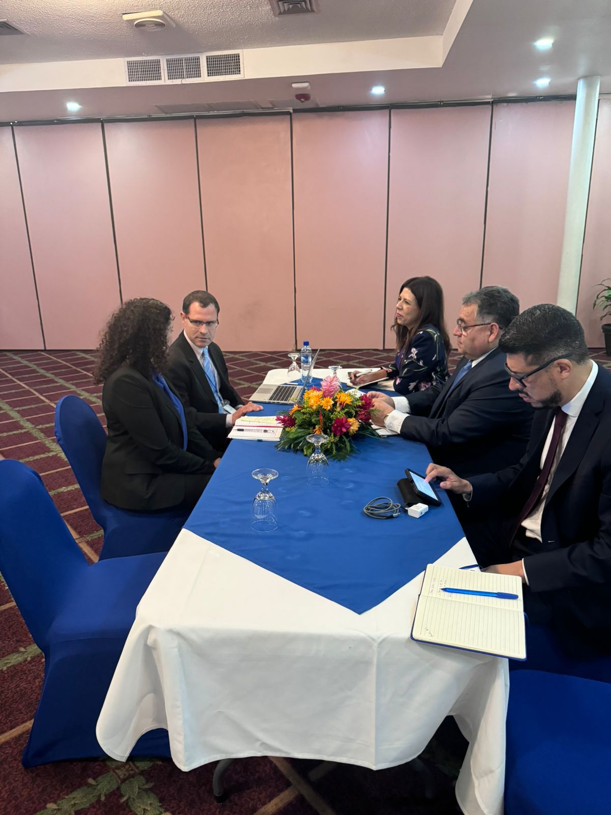 Belice, 5 de diciembre de 2024. Al margen las actividades de la Reunión Viceministerial de la Conferencia Regional sobre Migración (CRM) que se celebra en Belice, el Viceministro de Relaciones Exteriores de Guatemala Antonio Escobedo sostuvo un encuentro bilateral con la Directora General de Relaciones Bilaterales y Compromiso Internacional en Inmigración, Refugio y Ciudadanía de Canadá, Shannon-Marie Soni.