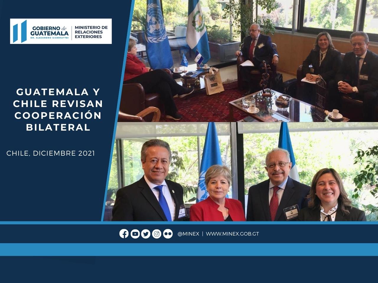Santiago de Chile, Chile, 7 de diciembre de 2021. Como parte de su visita de trabajo a la República de Chile, el viceministro de Relaciones Exteriores, Carlos Ramiro Martínez, sostuvo un encuentro este lunes con la secretaria ejecutiva de la Comisión Económica para América Latina y el Caribe (Cepal), Alicia Bárcena, con el objetivo dar seguimiento a la fase de implementación de los proyectos priorizados por Guatemala en el marco del Plan de Desarrollo Integral (PDI).
