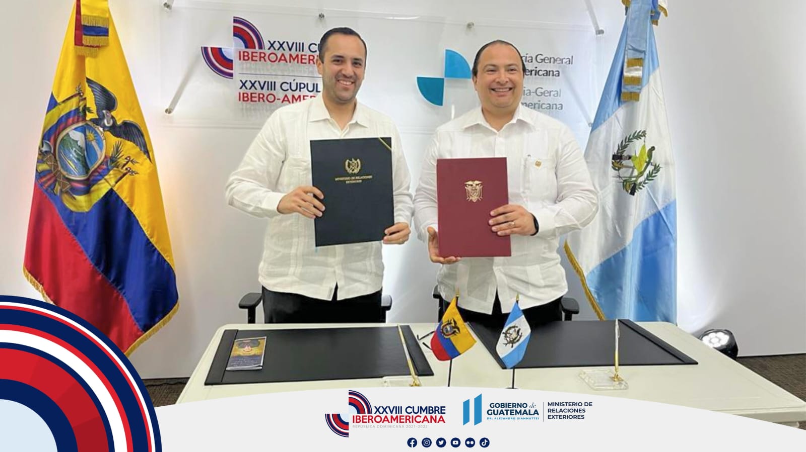 El instrumento, suscrito al margen de la XXVIII Cumbre Iberoamericana de Jefes y Jefas de Estado y de Gobierno, que se desarrolla en República Dominicana, contempla impulsar el fortalecimiento de capacidades de los funcionarios de Guatemala y Ecuador.