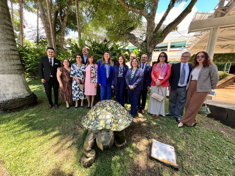 El Ministerio de Relaciones Exteriores de Guatemala recibió la escultura titulada “Tortuga Gigante de las Islas Galápagos”, un obsequio de la Embajada del Ecuador en Guatemala. Esta obra de arte contemporáneo, considerada la escultura más grande del mundo en contener papel encapsulado en vidrio fundido, es un legado único que enriquece el patrimonio cultural de Guatemala.