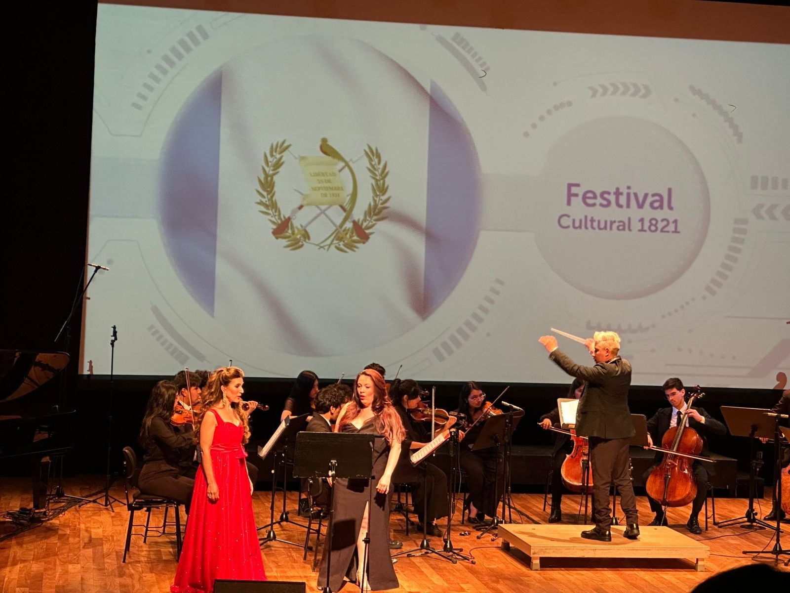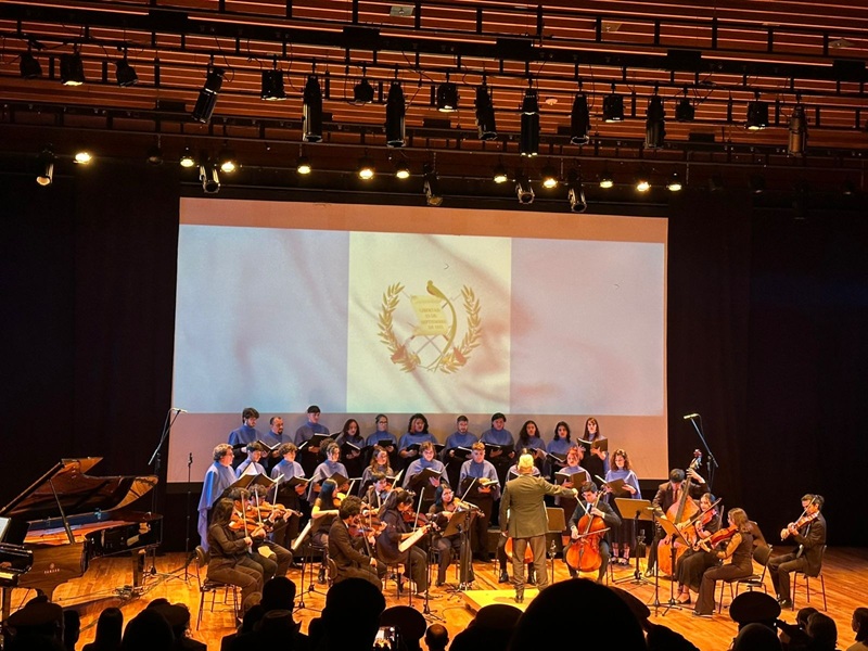 En representación de Guatemala, la soprano Sofía Díaz Arias interpretó “Luna de Xelajú” y dos piezas del compositor guatemalteco Miguel Sandoval: “Lamento” y “Sin tu amor”, acompañada por la Camerata Arsis bajo la dirección del maestro salvadoreño Bryan Cea. Asimismo, se destacó la participación del cantautor costarricense José Cañas, la cantante hondureña Estrella Flores y el Coro Azul, quienes enriquecieron la velada con su arte y compromiso cultural.