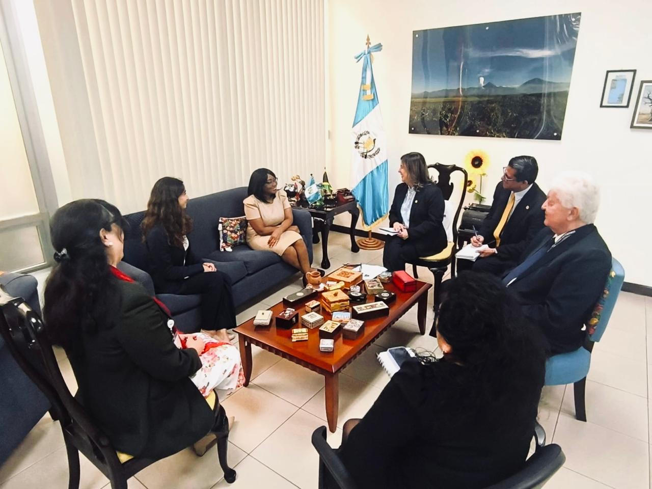 Guatemala, 16 de abril de 2026. La directora general de Relaciones Internacionales Bilaterales del Ministerio de Relaciones Exteriores sostuvo una reunión con la embajadora de Jamaica concurrente para Guatemala, Julia Elizabeth Hyatt, junto a su equipo de trabajo.