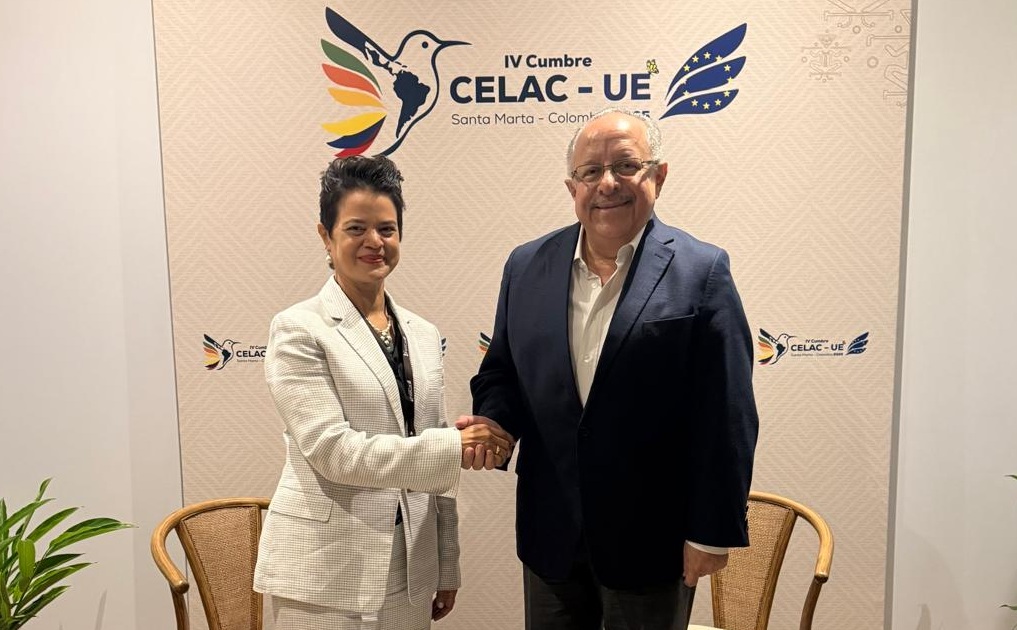 Santa Marta, Colombia, 10 de noviembre de 2025. El Canciller de Guatemala, Carlos Ramiro Martínez Alvarado, sostuvo una reunión bilateral con la Secretaria General de la Asociación de Estados del Caribe (AEC), Noemí Espinoza. El encuentro se desarrolló al margen de la cuarta Cumbre de la Comunidad de Estados Latinoamericanos y Caribeños (CELAC) y la Unión Europea (UE).
