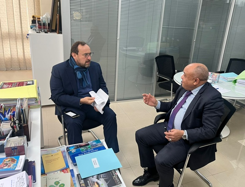 Rabat, Marruecos, 3 de febrero de 2026. El embajador de Guatemala en Marruecos, Marco Tulio Chicas, sostuvo una reunión con el Jefe del Departamento de Cooperación Académica de la Agencia Marroquí de Cooperación Internacional (AMCI), Abdelhak Ben Raiss.