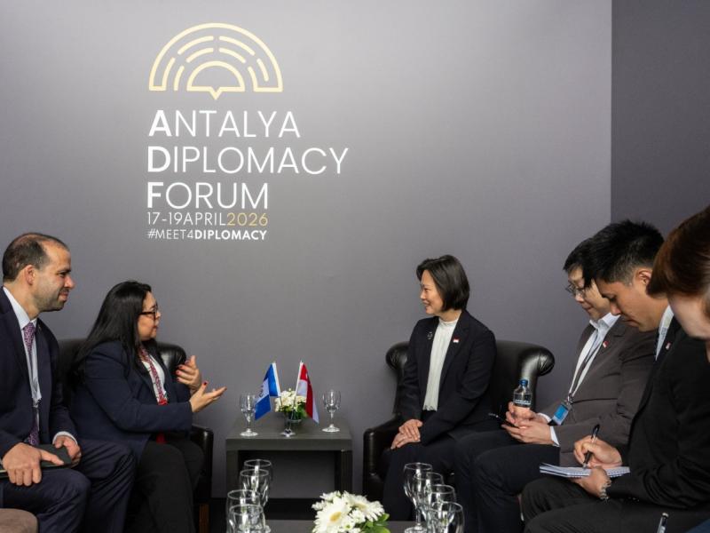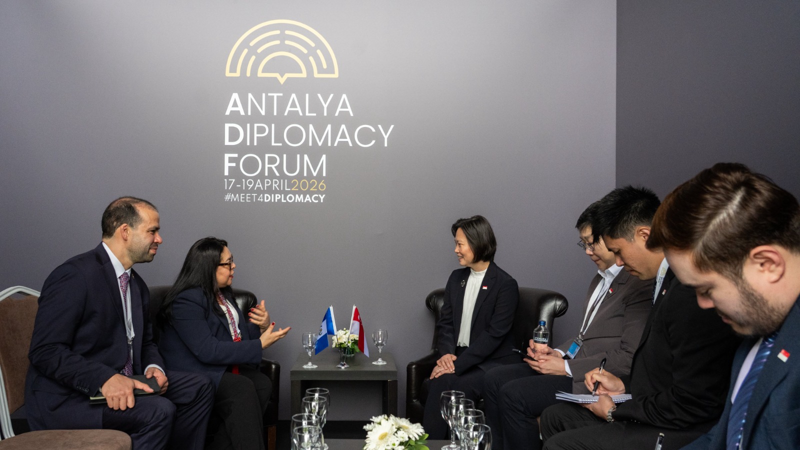 Antalya, Türkiye, 17 de abril de 2026. En el marco del Foro de Antalya 2026, la vicecanciller Mónica Bolaños Pérez sostuvo una reunión bilateral con la ministra de Estado de Singapur, Excma. Gan Siow Huang, con quien conversó sobre la agenda multilateral y las oportunidades de colaboración en el ámbito bilateral.