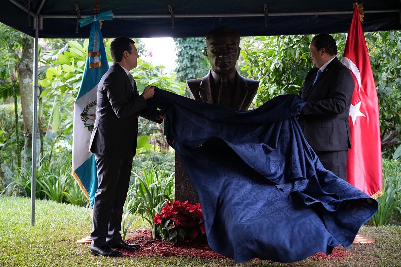 Ciudad de Guatemala, 5 de diciembre de 2023. El ministro de Relaciones Exteriores, Mario Búcaro, en representación del Gobierno de Guatemala, presidió hoy en la Cancillería la inauguración de una pérgola turca y de un busto de Mustafa Kemal Atatürk (1881-1938), fundador de Türkiye, en conmemoración de 149 años de relaciones diplomáticas entre ambos países.