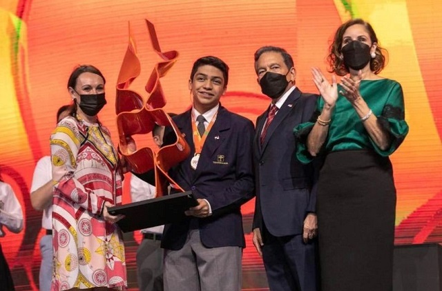 El presidente panameño, Laurentino Cortizo, y la primera dama, Yazmín Colón, le entregaron al adolescente un trofeo en reconocimiento al talento exhibido durante el evento.
