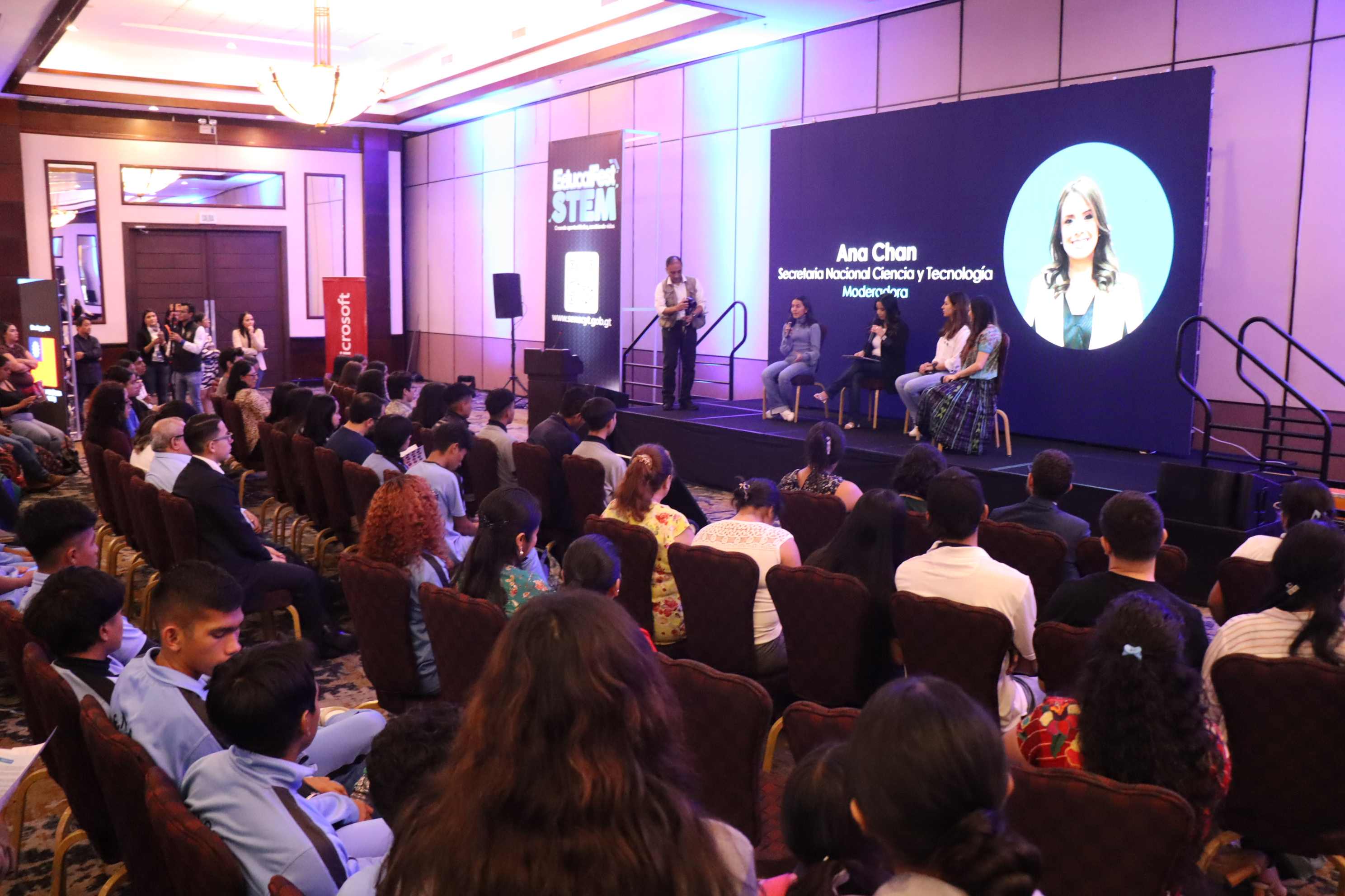 Además, se realizó el conversatorio "Descubre tu potencial: un futuro con mujeres y ciencia” el cual fue moderado por la secretaria nacional de la Senacyt, en el que participaron las heroínas en la ciencia Katherinne Herrera Jordán, Katia Sofía Samayoa Artiga y Jocelyne Melissa Puac Ixcamparic, quienes incentivaron a la juventud a estudiar a carreras STEM dando a conocer los beneficios que estas tienen tanto para su vida profesional como para el desarrollo del país.