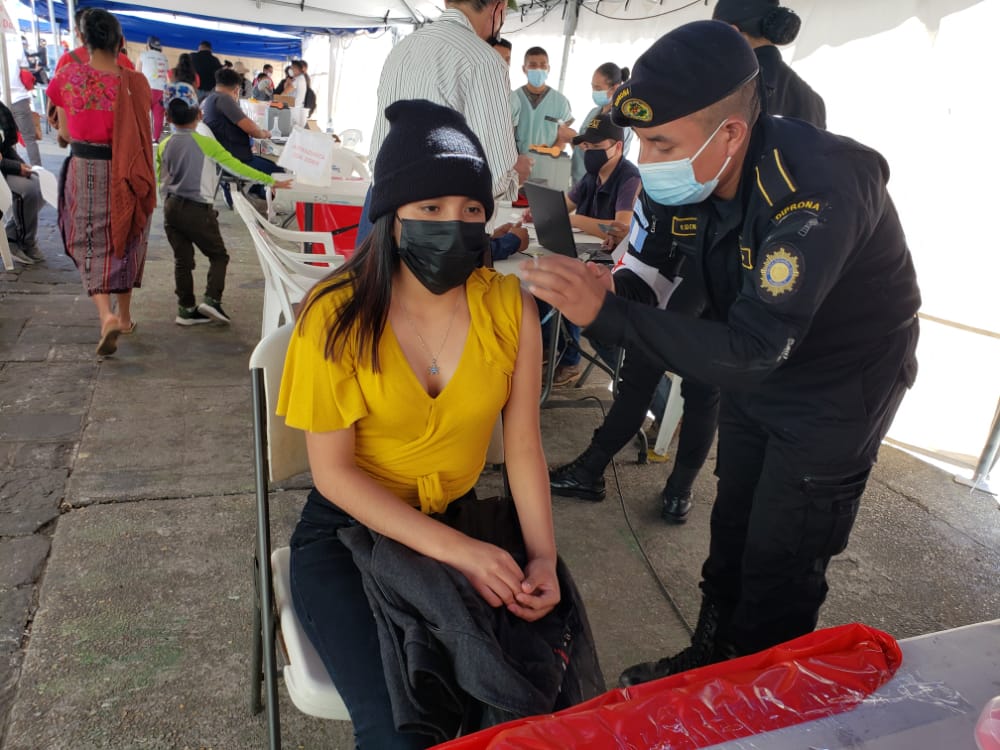 Siguiendo con el Plan Nacional de Vacunación, está a disposición de la población 2 mil vacunas Pfizer contra COVID-19 para menores de 12 a 17 años, así como otras 1 mil para mayores de edad de ese grupo etario, entre ellos mujeres en embarazadas, en la Plaza de la Constitución, informó la Policía Nacional Civil..