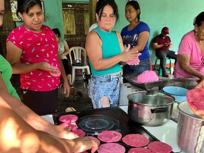 Durante la formación las participantes pudieron conocer más acerca de los hábitos de alimentación saludable que pueden aplicar en sus hogares. Fortalecen la calidad de vida de las familias mediante la elaboración de preparaciones nutritivas como tacos con tortillas fortificadas, utilizando hortalizas locales como la remolacha.
