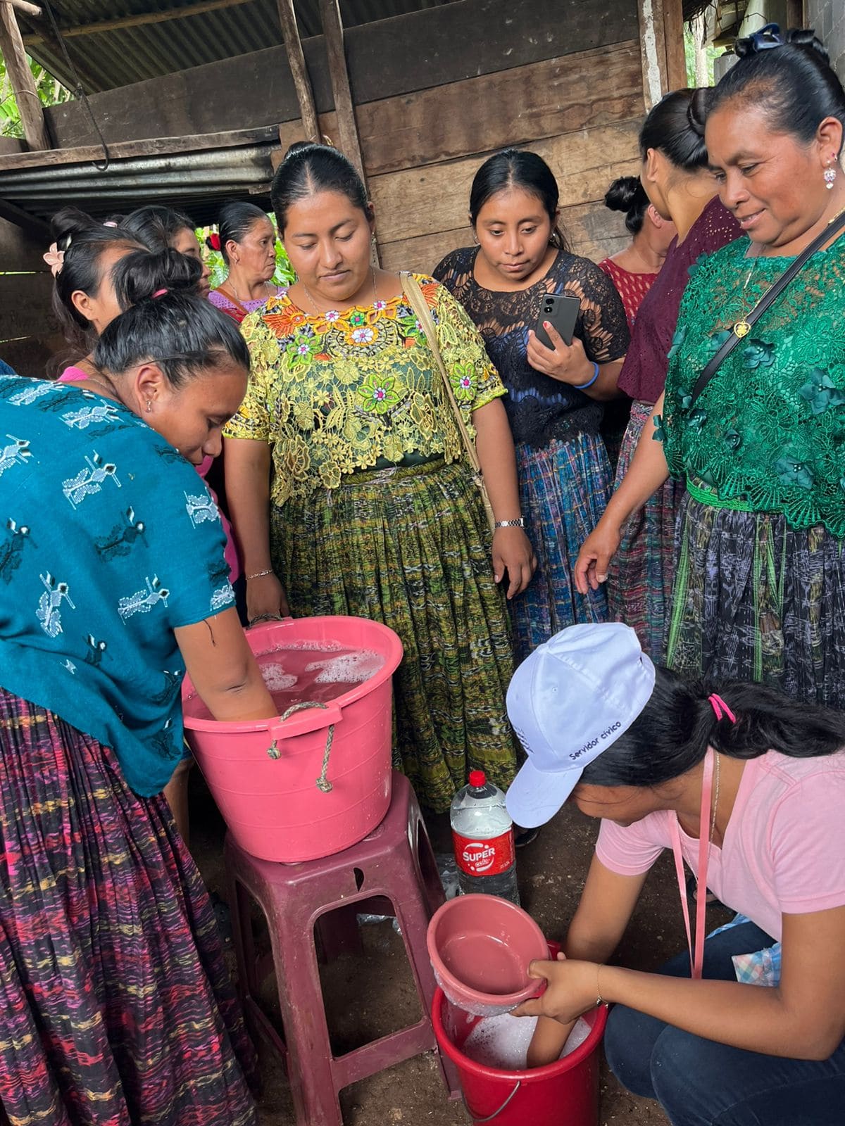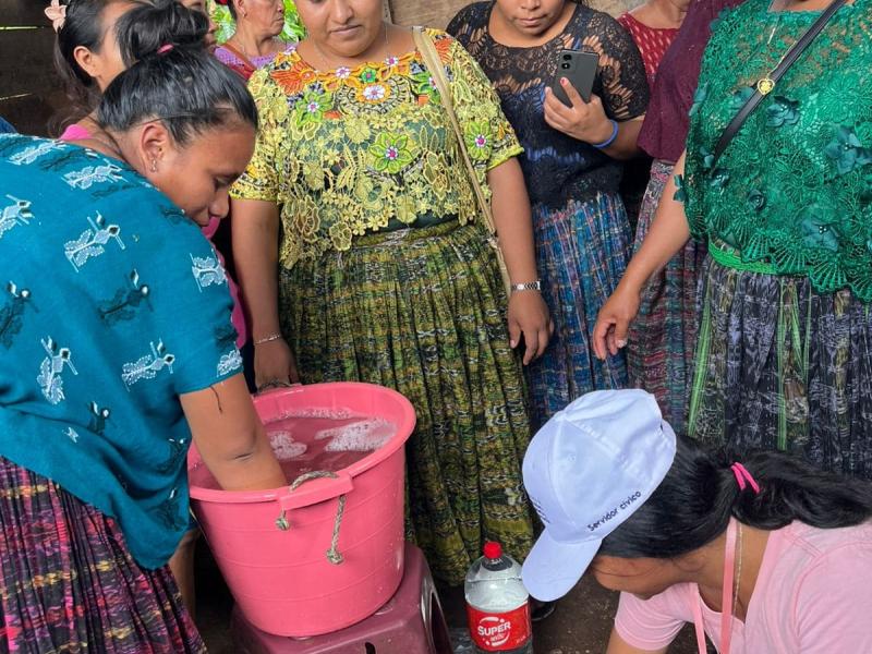 En la comunidad El Bongo, del municipio de El Estor, Izabal, el equipo de la sede departamental del MAGA realizó una formación en la producción de jabón desinfectante para manos.