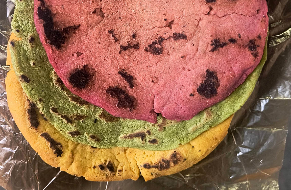 Las tortillas fueron elaboradas con masa de maíz mezclada con ingredientes naturales como remolacha, espinaca y zanahoria, que aportan nutrientes esenciales. Esta práctica también promueve la diversificación alimentaria en hogares rurales y fomenta el uso de ingredientes accesibles sin modificar hábitos culturales.