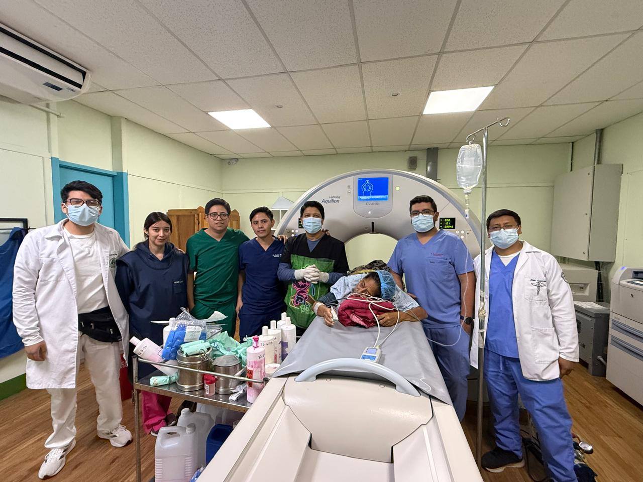 En el Hospital Regional de Occidente, los servicios de Oncología clínica, radiología y anestesiología del Hospital Regional de Occidente realizaron una biopsia pulmonar dirigida por tomografía axial computarizada (TAC) a una paciente del área de medicina interna.