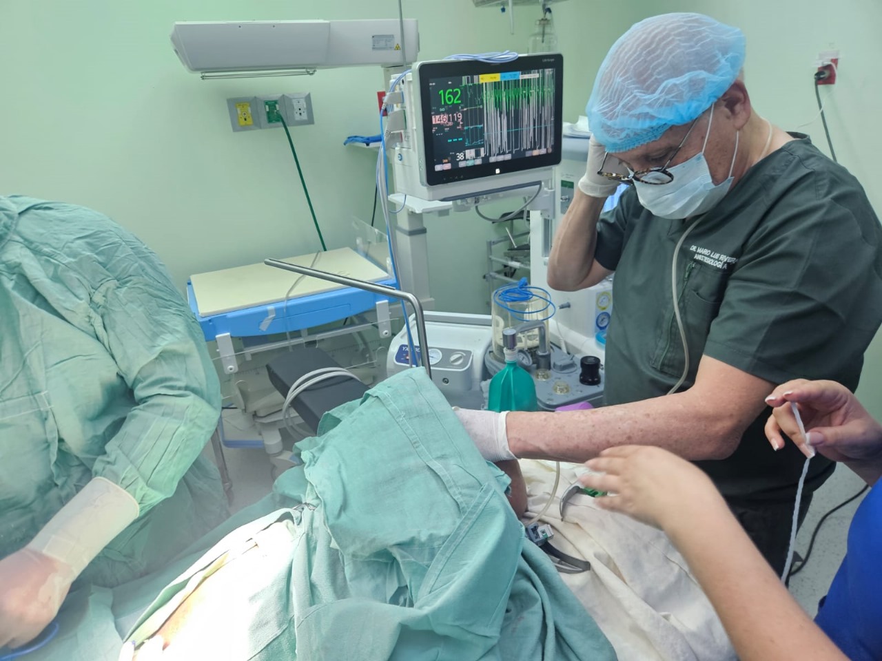 La paciente, que presentaba un cuadro de abdomen agudo, fue intervenida quirúrgicamente gracias al trabajo coordinado del equipo de anestesia y cirugía del hospital y a la coordinación de la directora del hospital, Dra. Patricia Cortés.