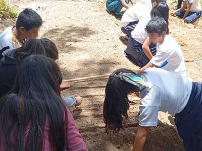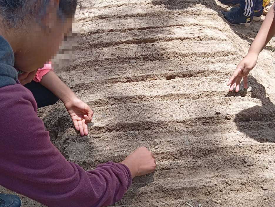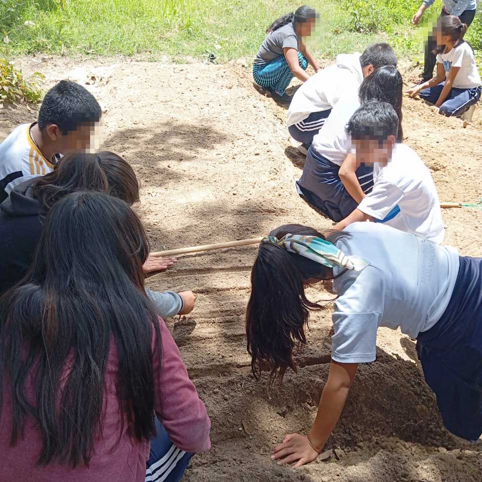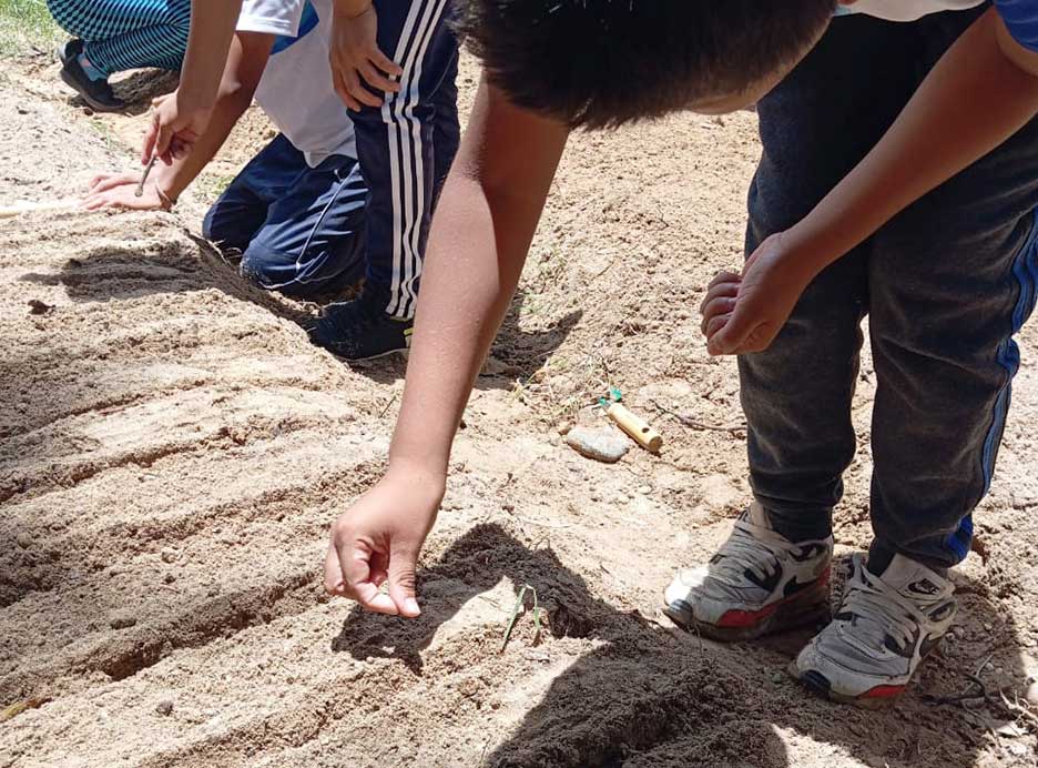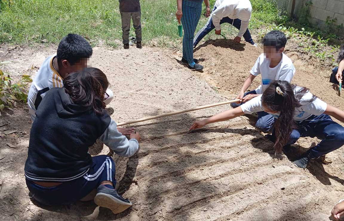 Los estudiantes de 5º y 6º grado participaron en la siembra dentro del huerto. Previo a la actividad, tanto el director como los docentes y alumnos recibieron una capacitación relativa a la preparación del terreno, la elaboración de tablones, el distanciamiento adecuado de siembra y la técnica correcta para sembrar.