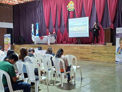 La nutricionista del componente de Agricultura Sensible a la Nutrición del MAGA, brindó una charla en la que expuso la importancia de la alimentación en el desarrollo físico y cognitivo de los estudiantes, destacando el rol de los huertos en el bienestar de las comunidades educativas.