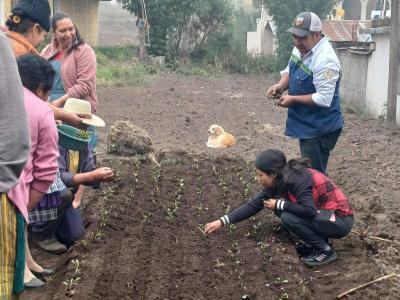 Este esfuerzo busca fortalecer la producción de alimentos para autoconsumo, mejorar su valor nutricional y contribuir al bienestar y la economía de las familias. Durante la jornada se aplicaron lineamientos técnicos para el establecimiento del huerto, como la preparación del suelo, elaboración de tablones, distanciamiento y profundidad de siembra, y manejo agronómico de hortalizas. Fueron sembrados pilones de brócoli, apio y cebolla, así como semillas de rábano, cilantro y zanahoria.