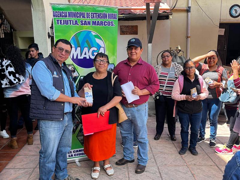 En el municipio de Tejutla, San Marcos, se entregaron semillas de hortalizas a 100 familias que integran los CADER atendidos por la Agencia Municipal de Extensión Rural (AMER).