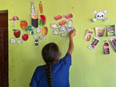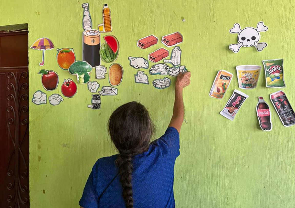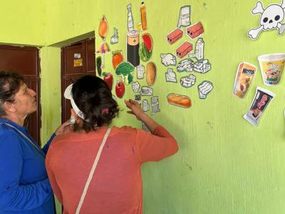Al final se desarrolló una dinámica participativa para identificar los diferentes tipos de alimentos que el cuerpo necesita: los que protegen la salud, los ayudan a crecer y fortalecer el cuerpo, y los que brindan energía. E
