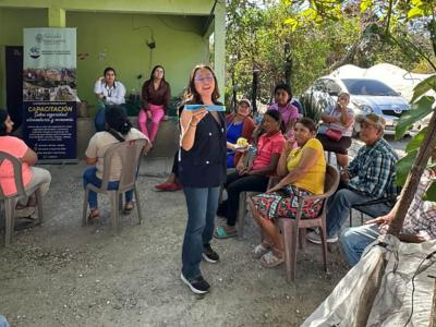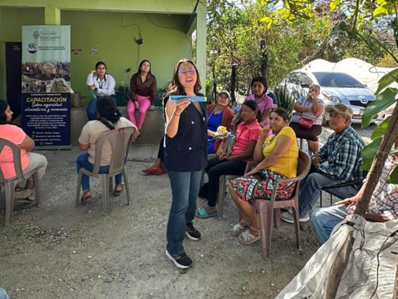 Durante la actividad, la nutricionista del componente de Agricultura Familiar Sensible a la Nutrición y Fomento de Huertos explicó cómo los huertos familiares contribuyen a garantizar el acceso y la disponibilidad de alimentos frescos, saludables y de alto valor nutritivo.