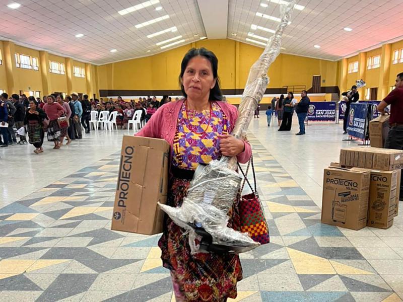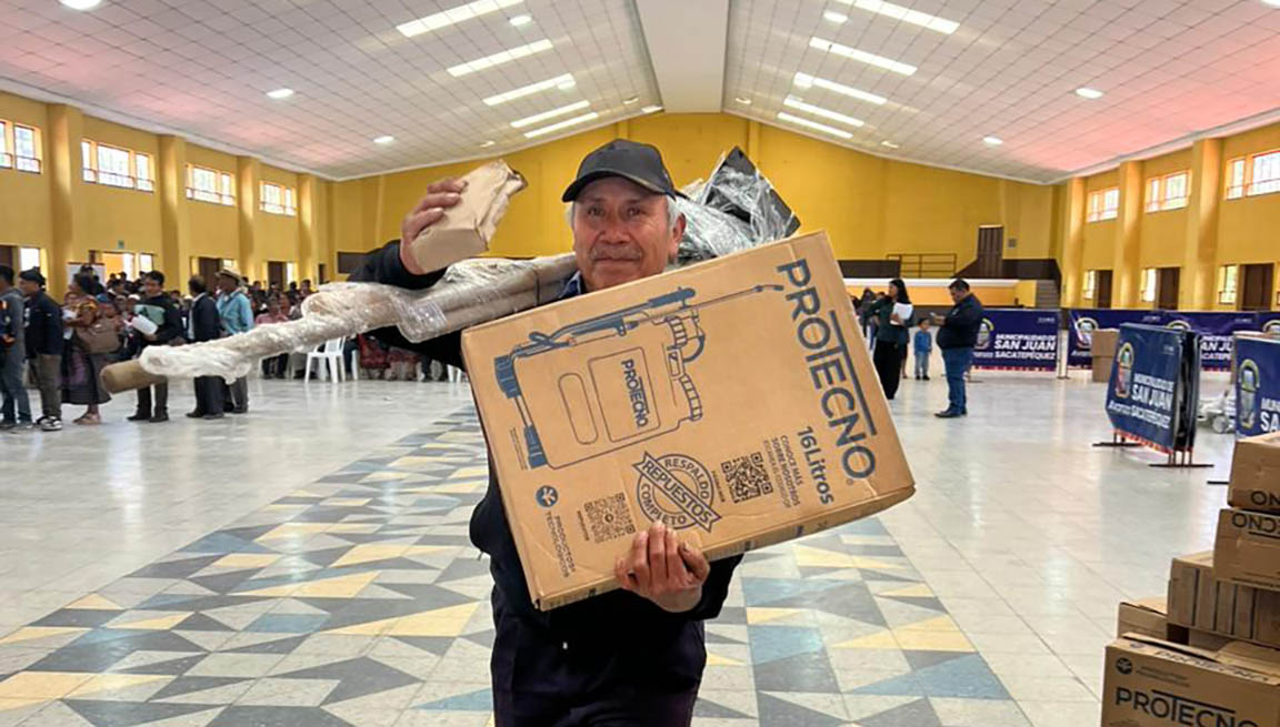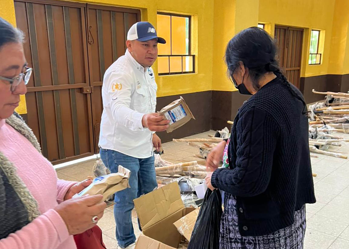 Gracias a los kits de fortalecimiento al Sistema Patio, los productores reciben herramientas, una bomba de aspersión y semillas de acelga, cilantro, cebolla blanca, güicoy, pepino, así como especies nativas como amaranto y chipilín. Estos insumos les permiten iniciar o ampliar sus huertos familiares y diversificar su alimentación.