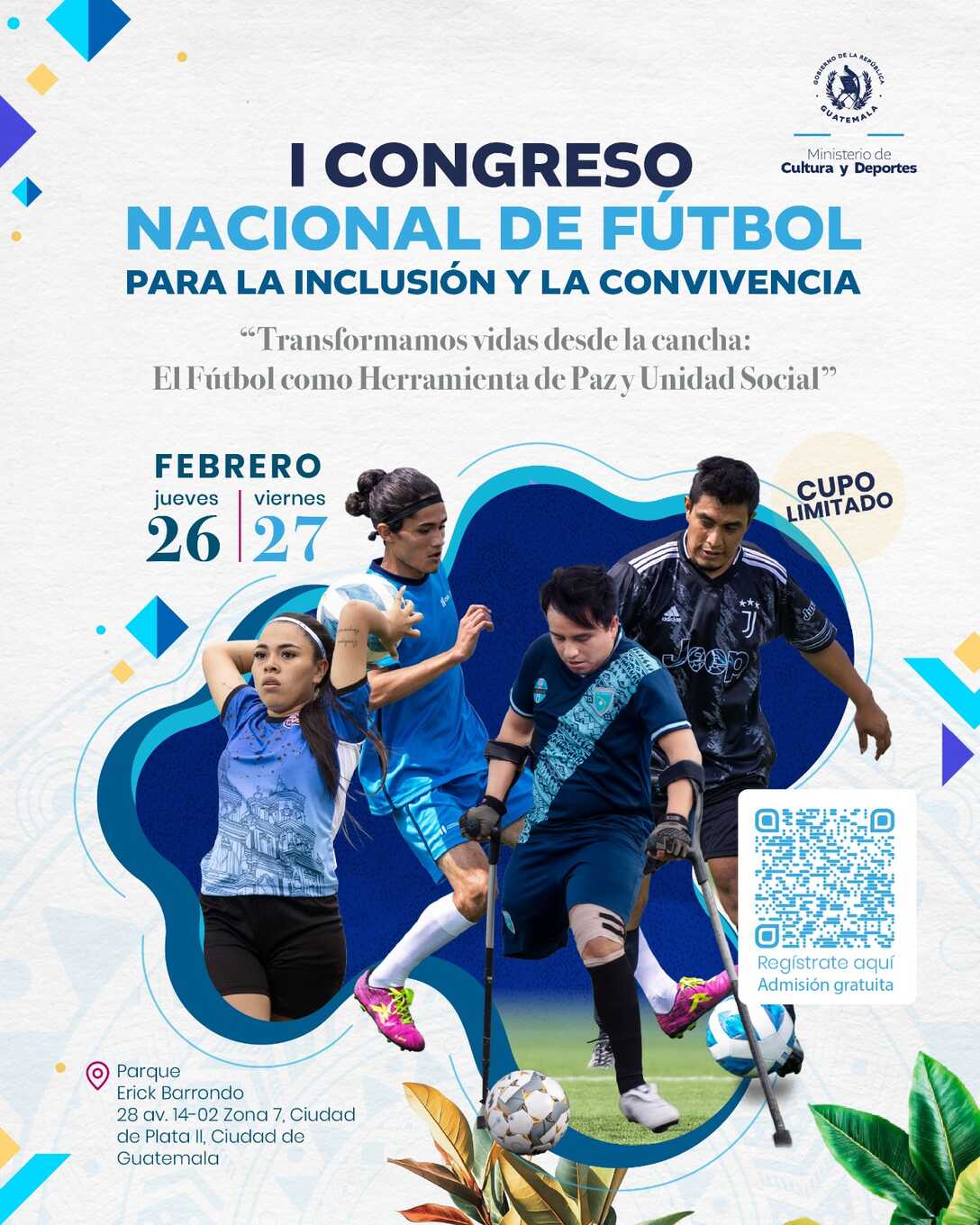 El Ministerio de Cultura y Deportes (MCD) te invita al I Congreso Nacional de Fútbol para la Inclusión y la Convivencia, un espacio donde se fortalecerá el uso del fútbol como medio para educar y transformar comunidades.
