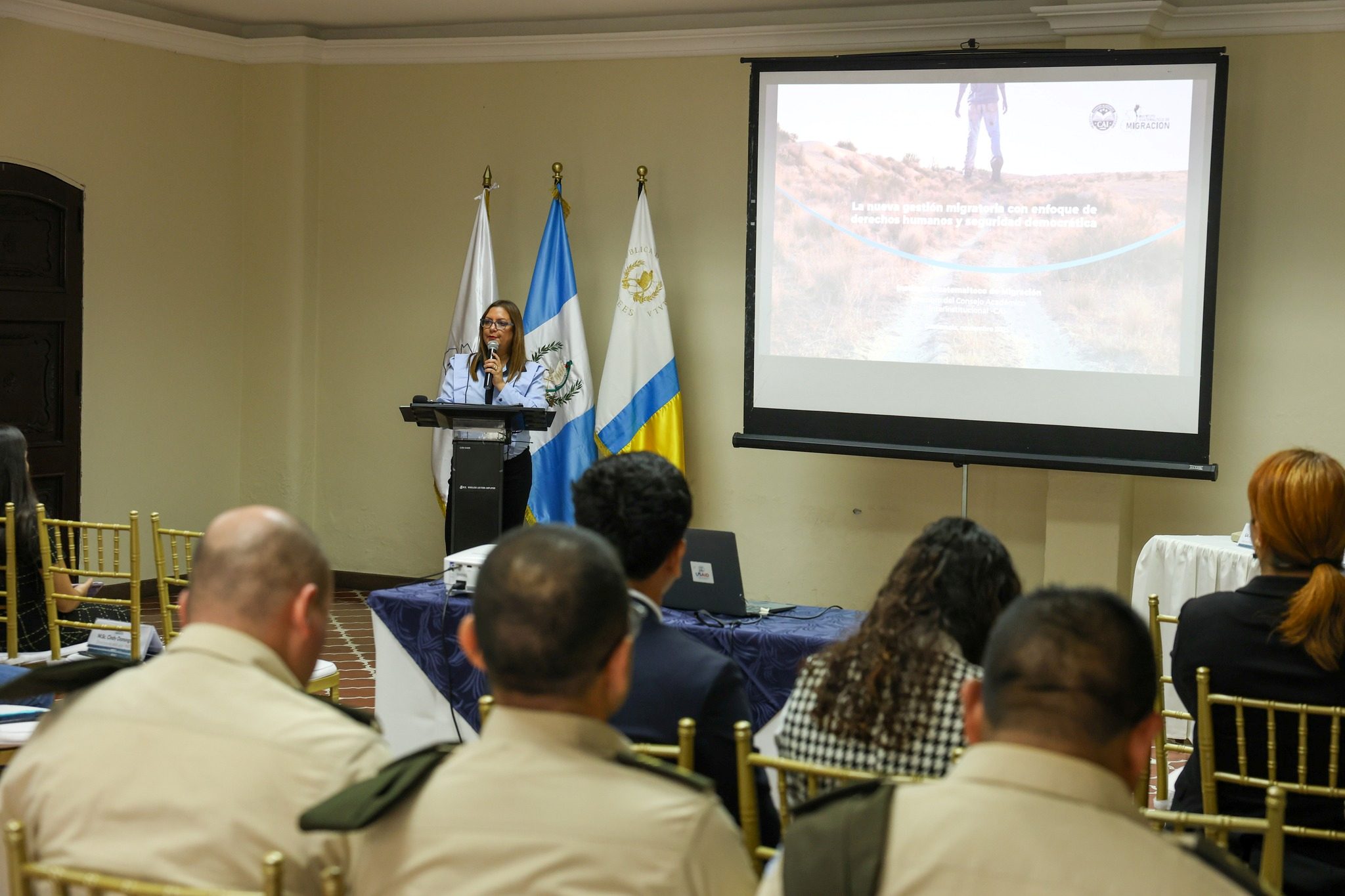 La bienvenida estuvo a cargo de Valentina Flores, jefa de la Subdirección de Recursos Humanos. Durante la sesión, el IGM presentó los avances más relevantes de su gestión mediante la conferencia “La nueva gestión migratoria con enfoque de derechos humanos y seguridad democrática”, impartida por Rudy Camposeco, jefe del Departamento de Profesionalización y Desarrollo, y Erickzón Cermeño, jefe del Departamento de Control Fronterizo.