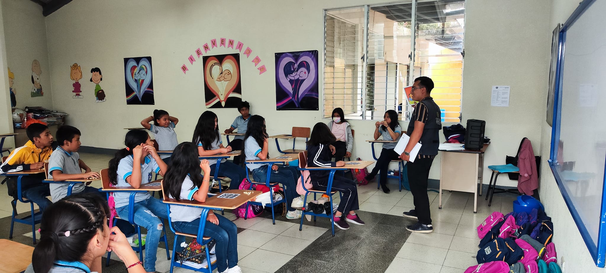 El personal de la SESAN utilizó el kit de herramientas de comunicación contenidos en la Mochila Azul para interactuar con los menores, mientras que a los padres de familia se les brindaron dos charlas, la primera fue sobre los cuatro pilares de la Seguridad Alimentaria y Nutricional (SAN) y la segunda sobre recetas con productos fortificados de arroz y lentejas donados por la organización Buckner Guatemala.