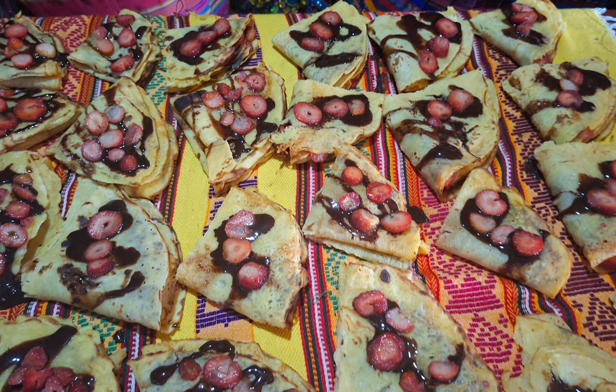 En la fase práctica, las participantes elaboraron crepas dulces, producto que comentaron utilizarán para iniciar la comercialización local. Este taller ha beneficiado directamente a 14 familias de la comunidad.