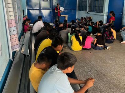 La implementación del huerto se desarrolló en dos fases: teórica y práctica. En la fase teórica, el profesional en Agricultura Familiar de VISAN explicó las funciones del huerto escolar, los lineamientos para su establecimiento, la elaboración de tablones, el riego, el uso adecuado de herramientas, el distanciamiento entre cultivos y los tipos de siembra.