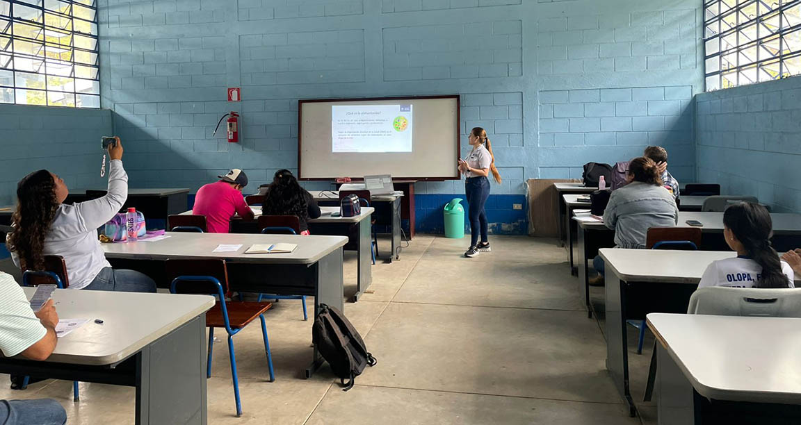 Durante las sesiones, personal del componente de Agricultura Sensible a la Nutrición del MAGA abordó temas sobre alimentación saludable, aprovechamiento de productos locales, prácticas de higiene y uso de huertos escolares y familiares para mejorar el acceso a alimentos frescos y nutritivos.