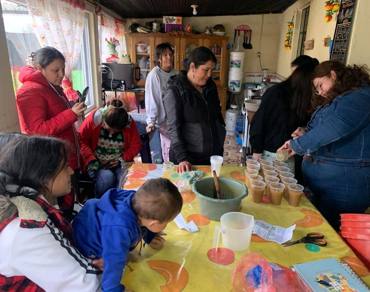 Esta iniciativa permite que las madres de familia produzcan sus propios insumos de higiene, reduciendo los gastos mensuales y garantizando que el hogar cuente con los elementos necesarios para la desinfección y el aseo personal.