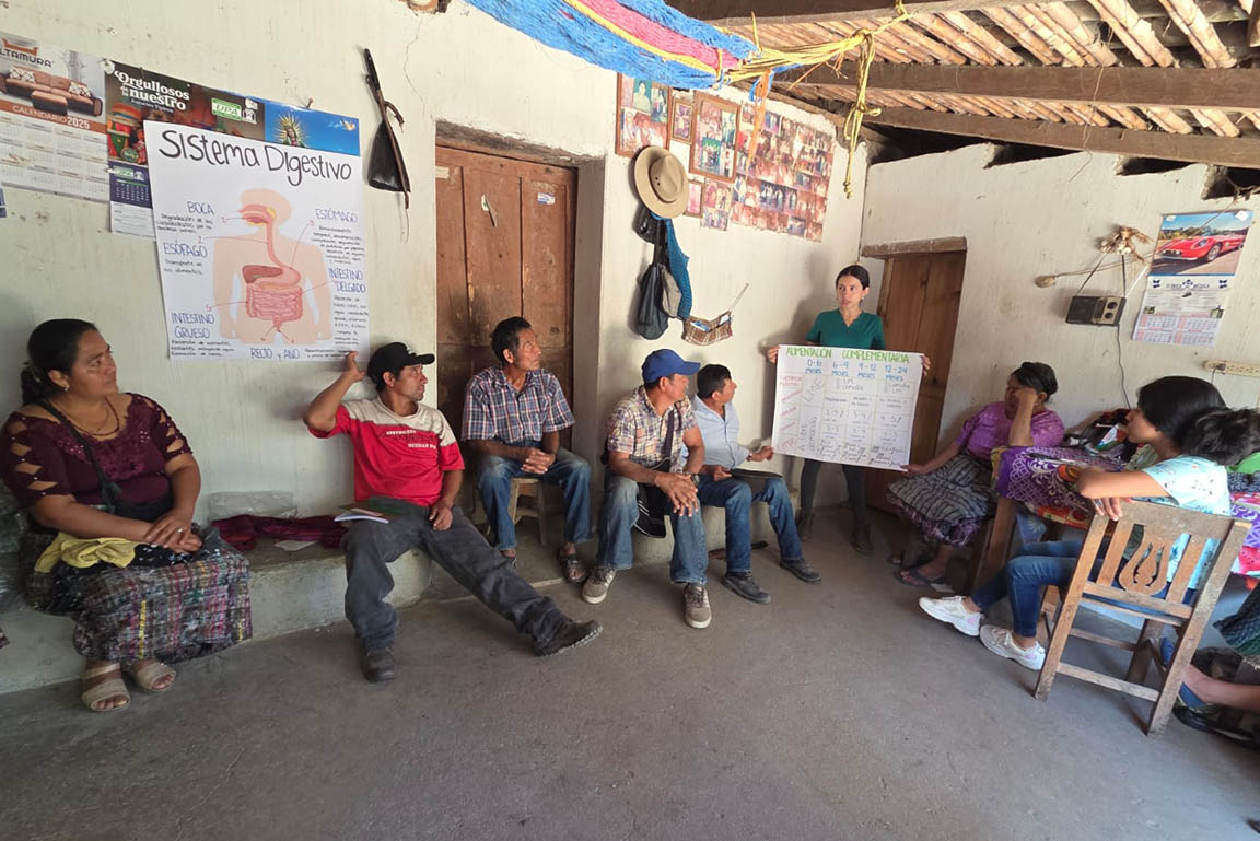 Durante la jornada, la promotora de Agricultura Sensible a la Nutrición del Ministerio de Agricultura, Ganadería y Alimentación (MAGA), capacitó a los participantes acerca del sistema digestivo, la absorción de nutrientes y la importancia de una alimentación variada desde la infancia hasta la vida adulta. Por medio de esta formación, se promovió la agricultura familiar como una estrategia clave para garantizar el acceso y disponibilidad de alimentos nutritivos.