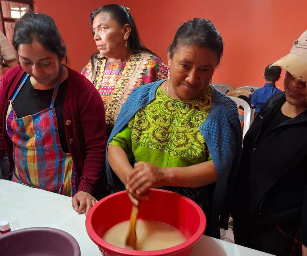 Durante la jornada, las beneficiarias recibieron capacitación técnica para la elaboración de jabón para ropa de forma artesanal.